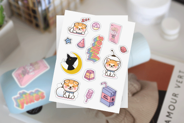 When you’ve finished your page design, you can choose between removable or permanent white vinyl, and a glossy or matte finish! All of our aesthetic stickers are waterproof, meaning you can stick them to just about any smooth surface, where they’ll stay put for years.